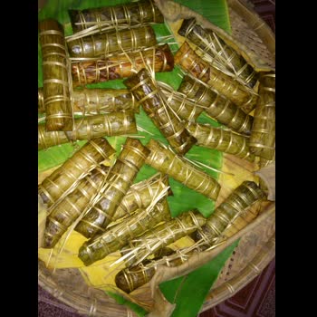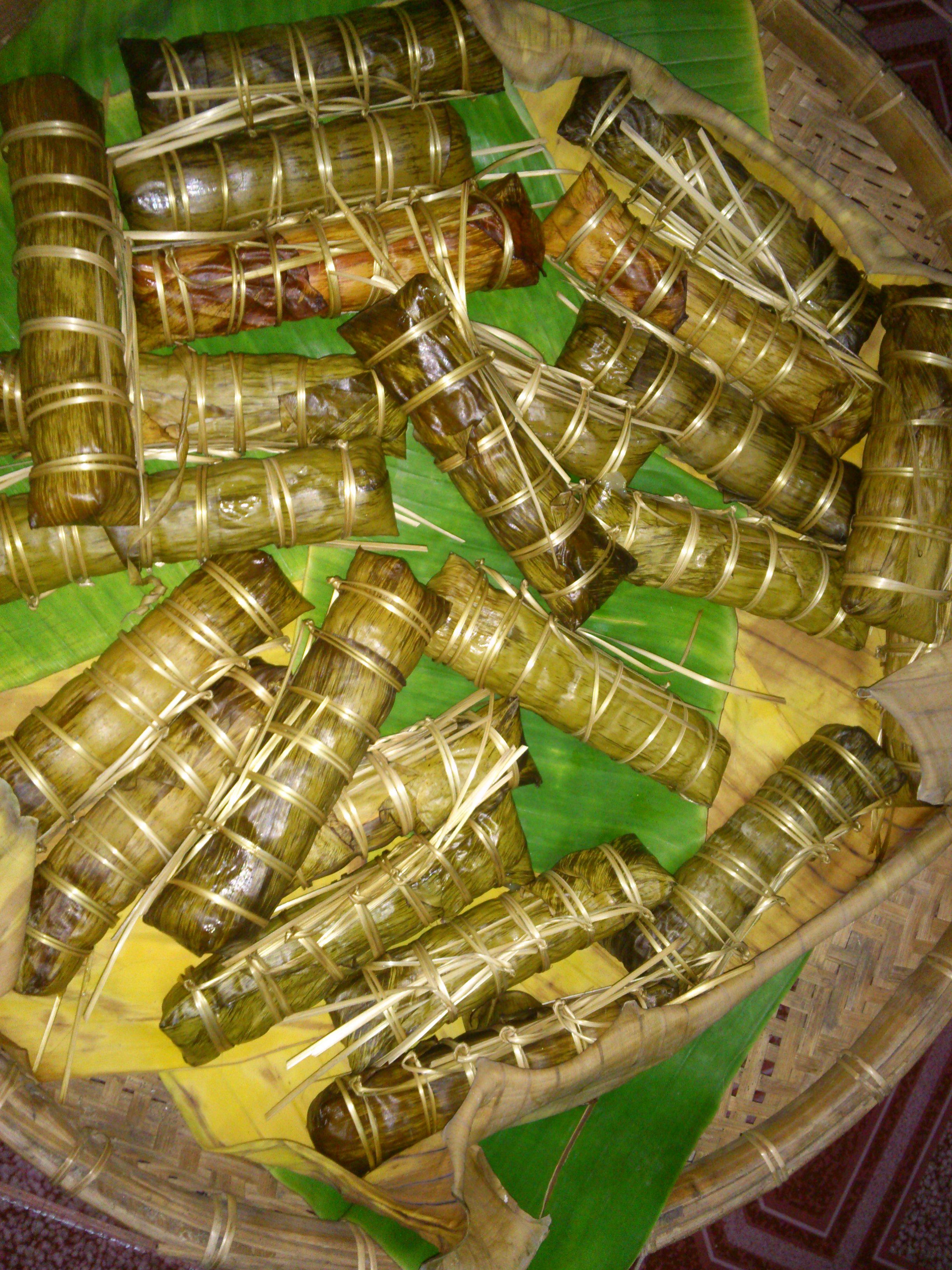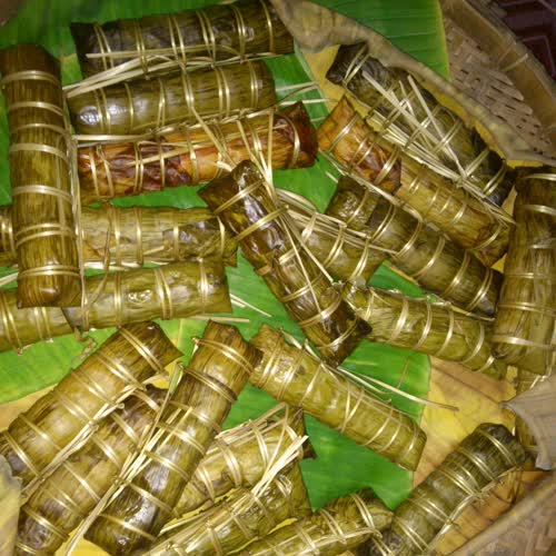| คำอธิบาย : ขนมมัดใต้เป็นขนมที่ทำขึ้นในเทศกาลตรุษจีน เพื่อใช้ไหว้บรรพบุรุษของชาวไทยเชื้อสายจีน โดยทำจากข้าวหนียว ใส้ไส้ด้วยถั่วเหลืองที่ปรุงรสแล้้ว ห่อด้วยใบตองและมัดด้วยตอก นำไปนึ่งให้สุกและรับประทานได้เลย |