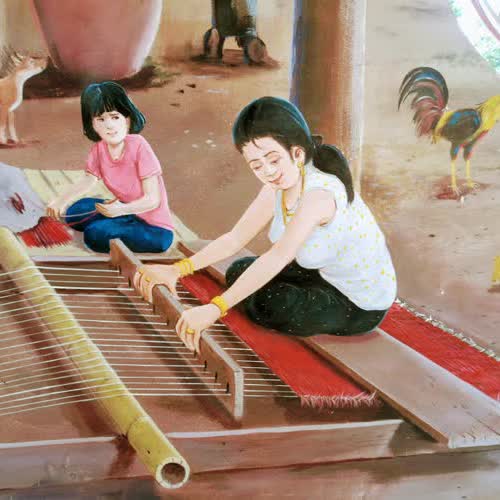 | คำสำคัญ : หูกทอผ้า, ความเป็นอยู่ของชาวอีสานในอดีต, ภาพวาด, การทอผ้า, อาชีพของสตรีอีสาน |