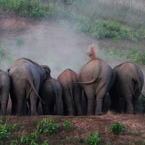 | คำอธิบาย : โป่ง เป็นแหล่งดินที่มีรสเค็มและละเอียดซึ่งเกิดจากแร่ธาตุบางชนิด เกิดขึ้นเองตามธรรมชาติ แร่ธาตุในโป่งประกอบไปด้วยโซเดียม แคลเซียม เหล็ก ฟอสฟอรัส และสังกะสี ซึ่งเป็นที่ต้องการของกระดูกและกล้ามเนื้อ แร่ธาตุเหล่านี้เป็นสิ่งซึ่งช้าง สัตว์ป่าไม่สามารถหาทดแทนได้จากพืช ดังนั้นโป่งจึงเป็นแหล่งแร่ธาตุสำหรับสัตว์ป่าซึ่งกินพืชเป็นอาหาร โป่งที่สัตว์ลงไปใช้ประโยชน์ มักเป็นเนินเตี้ย ๆ หรือเป็นหย่อมดินโล่งอยู่กลางบริเวณที่มีต้นไม้ใหญ่ล้อมรอบ สังเกตเห็นได้จากการที่มีร่อยรอยการใช้ของสัตว์ ไม่ว่าจะเป็นรอยขุด รอยตีนย่ำ ใช้งาเเทง ปกติจะลึกไม่เกิน 1 เมตร เพื่อกินดินเหล่านั้น โดยเริ่มกินที่ผิวดินก่อนแล้วค่อย ๆ กินลึกลงไปเป็นบริเวณกว้างไม่เกิน 10 เมตร โป่งดินจะพบตามริมหรือในห้วยที่เป็นที่ราบ ในฤดูฝนที่มีน้ำท่วมขัง สัตว์ป่าจะไม่เลียกินดินแต่จะเลียกินน้ำแทน |