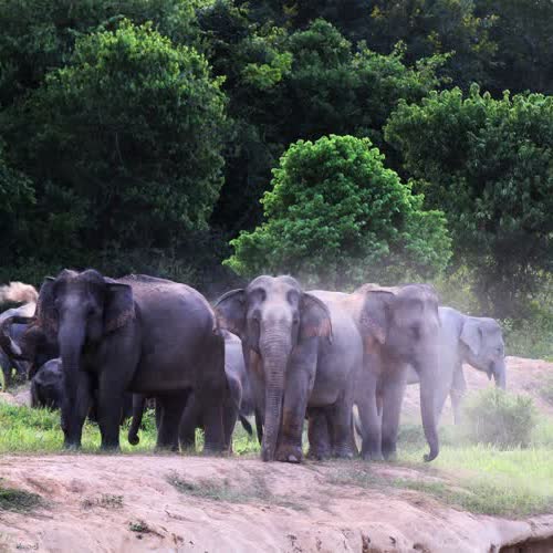 | คำอธิบาย : ช่วงเวลาเช้าตรู่ โขลงช้างหูลู่ แม่แปรกหูลู่ นำโขลงช้างออกหากิน เป็นโขลงช้างป่าที่ดุมาก เมื่อพบเจอสิ่งแปลกปลอม แม่หูลู่แสดงพฤติกรรม ส่งเสียงคำราม เเละเตะดินขู่ ให้ทิ้งระยะห่าง |