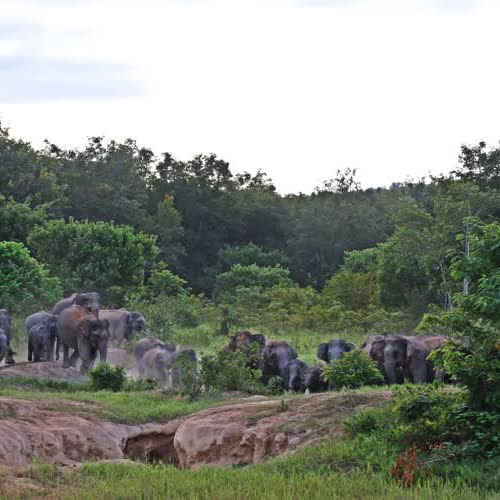 | คำอธิบาย : ช่วงเวลาเช้าตรู่ โขลงช้างหูลู่ แม่แปรกหูลู่ นำโขลงช้างออกหากิน เป็นโขลงช้างป่าที่ดุมาก เมื่อพบเจอสิ่งแปลกปลอม แม่หูลู่แสดงพฤติกรรม ส่งเสียงคำราม เเละเตะดินขู่ ให้ทิ้งระยะห่าง |