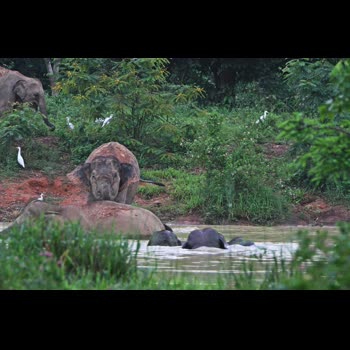 | คำอธิบาย : โขลงช้างป่าเเวะดื่มกินน้ำ เเละลงเล่นน้ำอย่างเพลิดเพลิน |