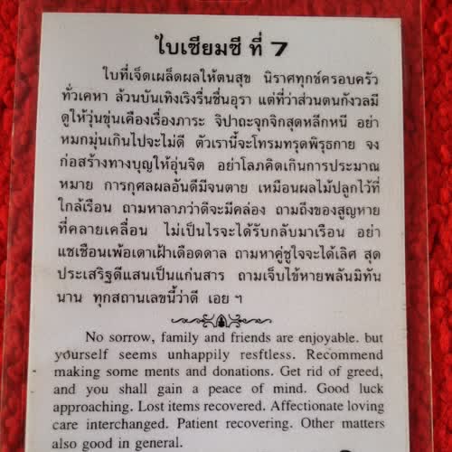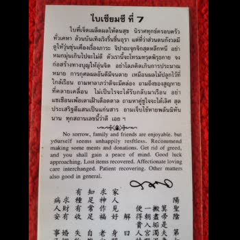 | คำอธิบาย : ใบเซียมซีใบเซียมซี การเสี่ยงเซียมซี คือการอธิษฐานจิตอย่างแน่วแน่ เพื่อให้สิ่งศักดิ์สิทธิ์ ดลให้ ผลแห่ง โชคชะตา ปรากฏขึ้นอย่างแม่นยำที่สุด |