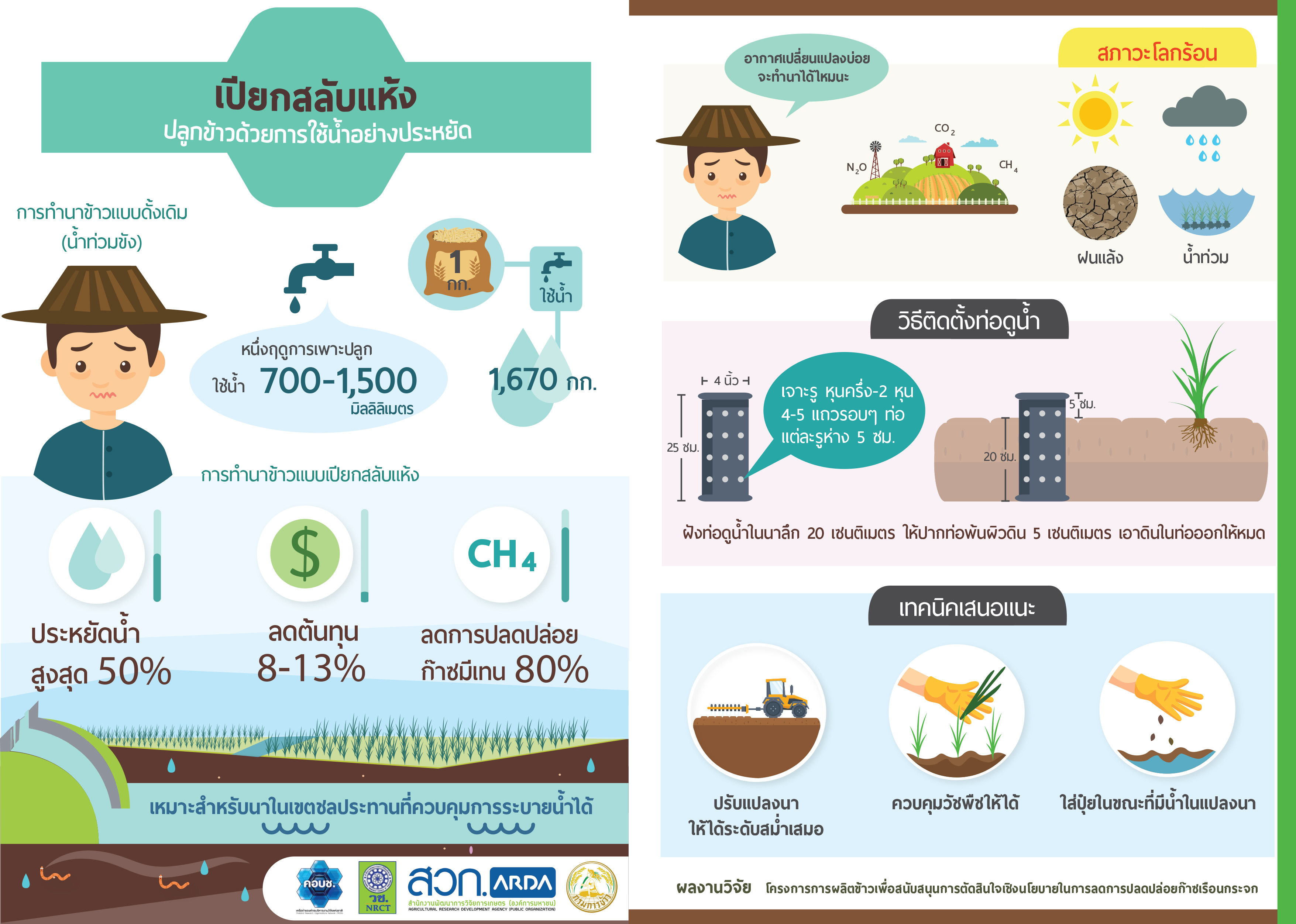 (2563). "Infographic เปียกสลับแห้ง ปลูกข้าวด้วยการใช้น้ำอย่างประหยัด".