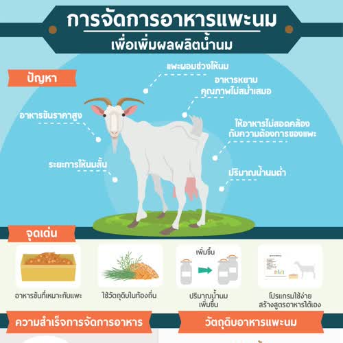 รีวิว : Infographic การจัดการอาหารแพะนม เพื่อเพิ่มผลผลิตน้ำนม
