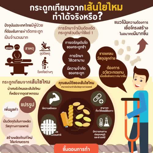 | ชื่อเรื่อง : Infographic กระดูกเทียมจากเส้นใยไหมทำได้จริงหรือ |