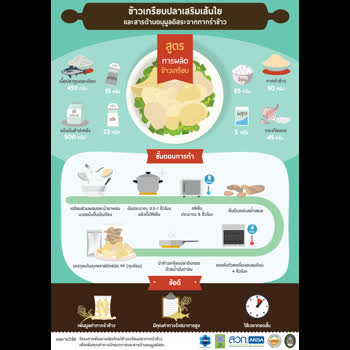 Infographic ข้าวเกรียบปลาเสริมเส้นใยและสารต้านอนุมูลอิสระจากกากรำข้าว ได้รับใบอนุญาตภายใต้ ให้เผยแพร่-โดยต้องระบุที่มาแต่ห้ามดัดแปลงและห้ามใช้เพื่อการค้า 3.0 Thailand.
