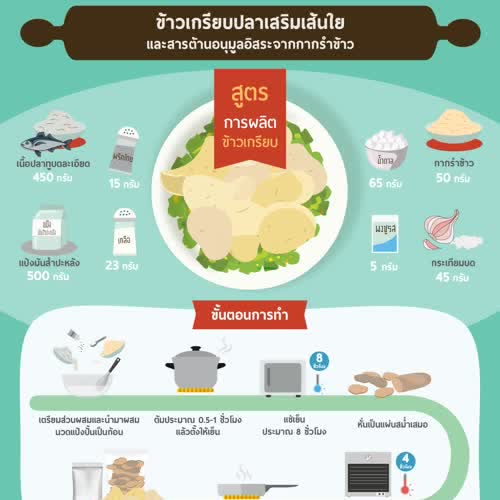 Infographic ข้าวเกรียบปลาเสริมเส้นใยและสารต้านอนุมูลอิสระจากกากรำข้าว