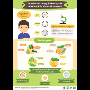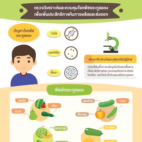 | ชื่อเรื่อง : Infographic ตรวจวิเคราะห์และควบคุมโรคพืชตระกูลแตง เพื่อเพิ่มประสิทธิภาพในการผลิตและส่งออก |