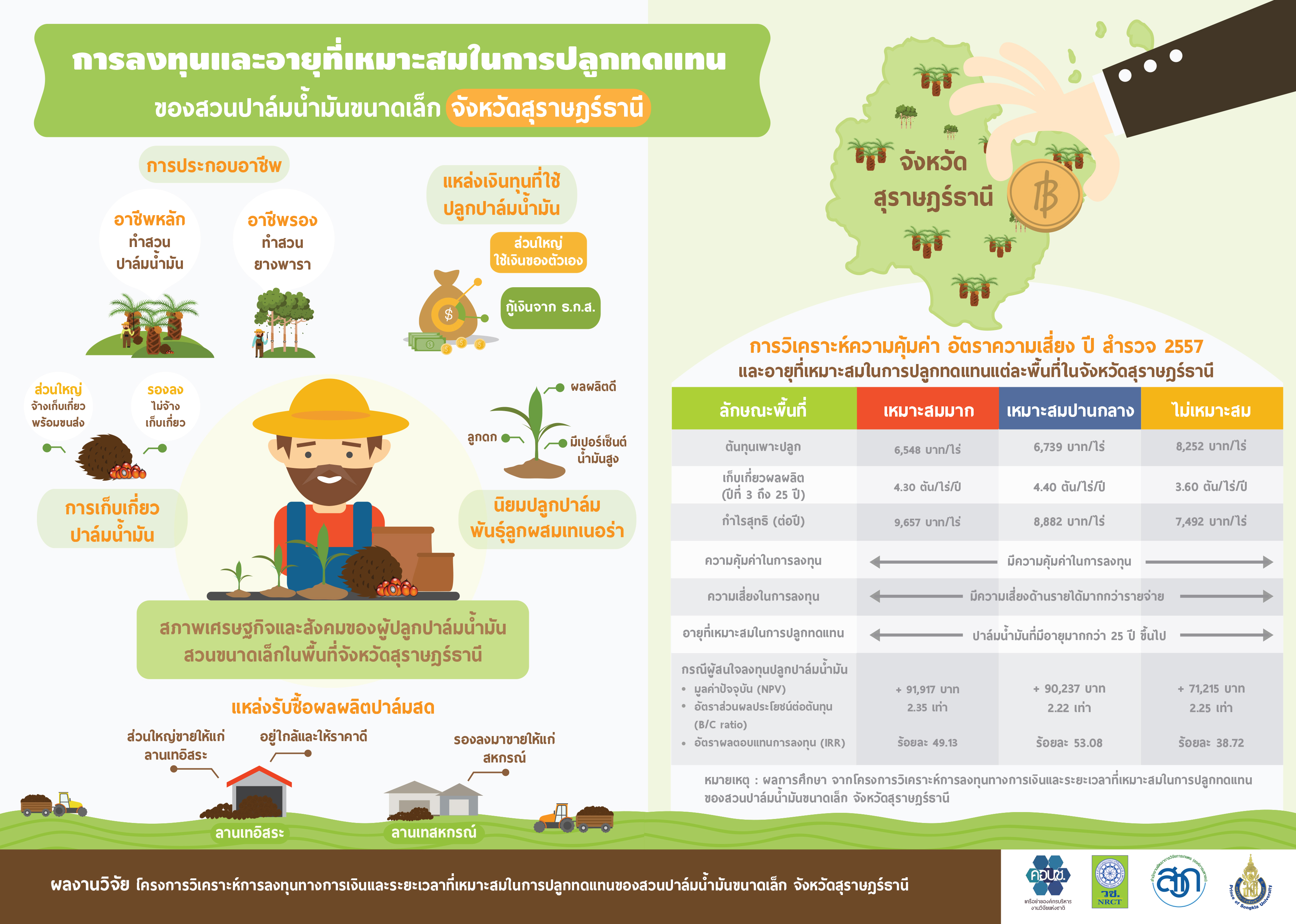 "Infographic การลงทุนและอายุที่เหมาะสมในการปลูกทดแทน ของสวนปาล์มน้ำมันขนาดเล็ก จังหวัดสุราษฎร์ธานี".