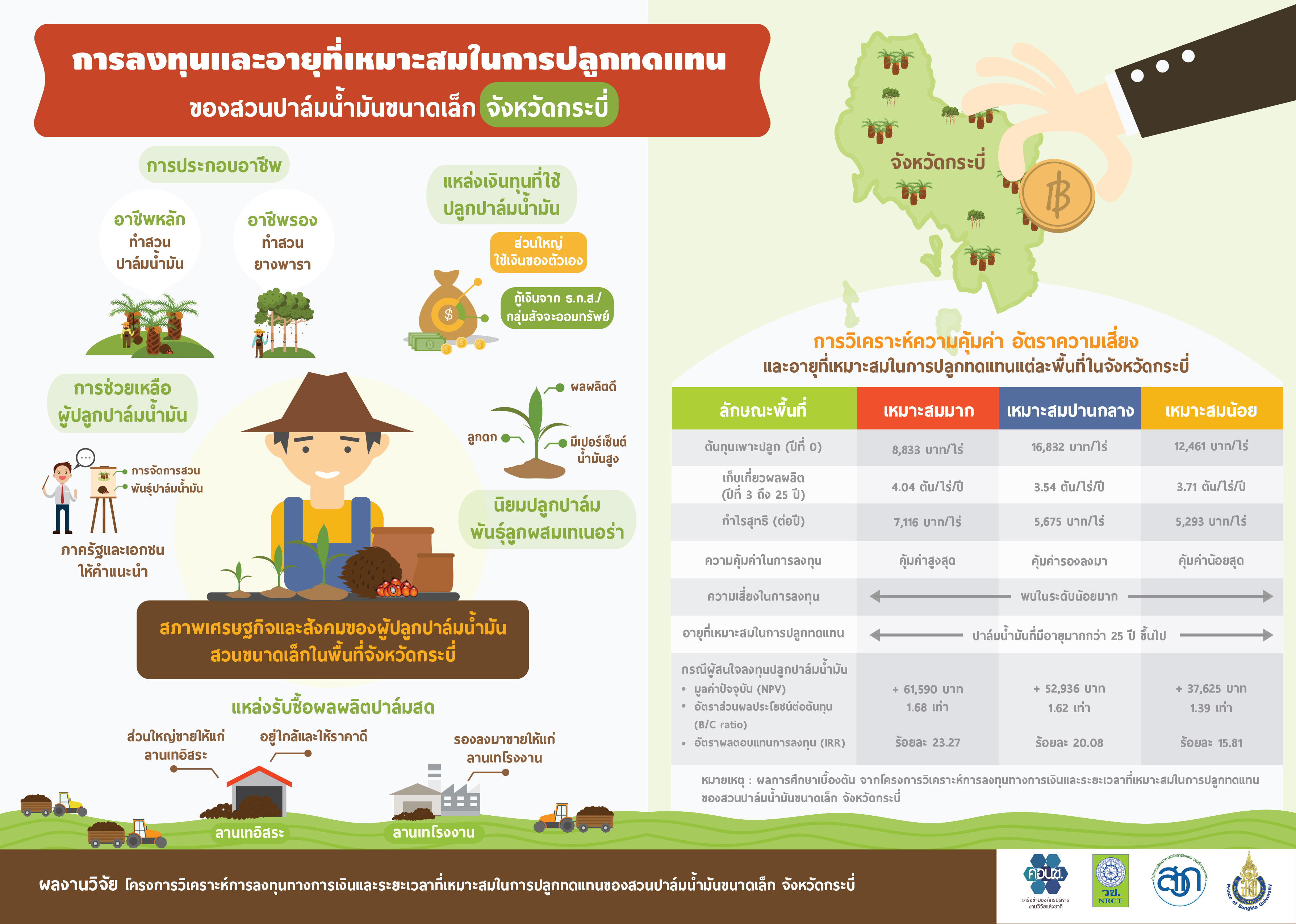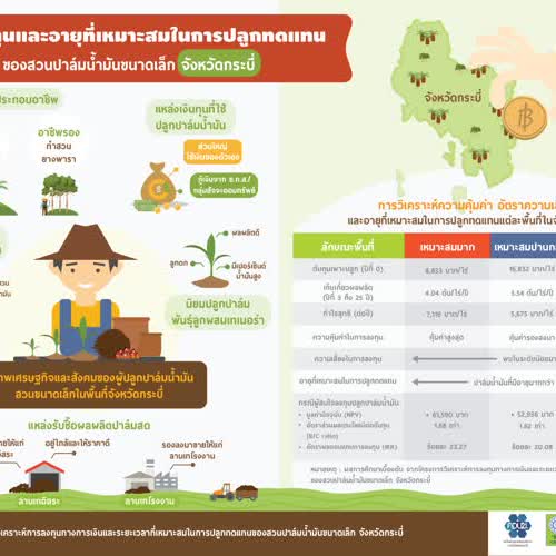 "Infographic การลงทุนและอายุที่เหมาะสมในการปลูกทดเเทน ของสวนปาล์มน้ำมันขนาดเล็ก จังหวัดกระบี่".