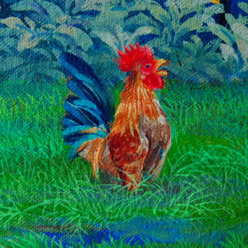 | ชื่อเรื่อง : ไก่-จิตรกรรมฝาผนัง พระที่นั่งทรงธรรม ในพระเมรุมาศ รัชกาลที่ ๙ |