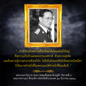 | คำสำคัญ : พระราชดำรัส, พระบาทสมเด็จพระเจ้าอยู่หัว รัชกาลที่ ๙, พระบรมราโชวาท |
