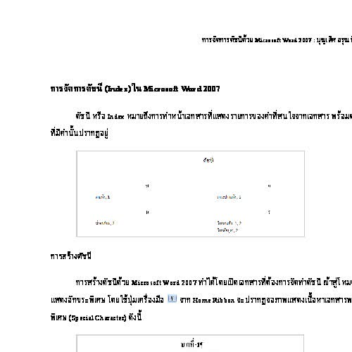 | ชื่อเรื่อง : การจัดการดัชนี (Index) ด้วย Microsoft Word 2007 |