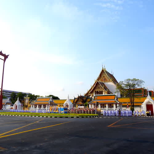| ชื่อเรื่อง : ขบวนอัญเชิญคนโทน้ำอภิเษก 76 จังหวัด ประกอบพิธีเสกน้ำพระพุทธมนต์ ณ วัดสุทัศน์ฯ |