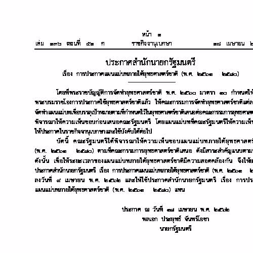 (2562). การประกาศแผนแม่บทภายใต้ยุทธศาสตร์ชาติ (พ.ศ. 2561- 2580),