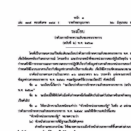 | คำสำคัญ : ชั้นความลับ, ระเบียบว่าด้วยการรักษาความลับของทางราชการ ฉบับที่ 2, ความลับของราชการ, เอกสารลับ |