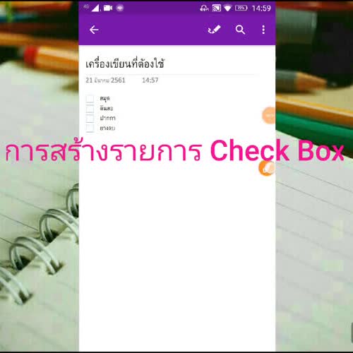 การสร้างรายการCheckBox (Mobile Literacy for Android ใช้ Microsoft OneNote) ได้รับใบอนุญาตภายใต้ ให้เผยแพร่-โดยต้องระบุที่มาแต่ห้ามดัดแปลงและห้ามใช้เพื่อการค้า 3.0 Thailand.