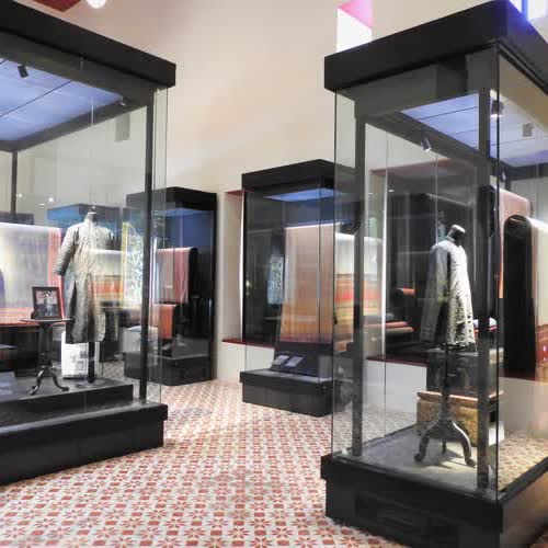 คำอธิบาย : ห้องจัดแสดง อิสริยพัสตราภูษาภัณฑ์ ณ พระที่นั่งอุตราภิมุข เป็นห้องจัดแสดงผ้าและเครื่องแต่งกายที่แสดงราชอิสริยยศยศของพระมหากษัตริย์ พระบรมวงศานุวงศ์ในราชสำนัก และแสดงยศถาบรรดาศักดิ์ของขุนนางและบุคคลชั้นสูง รวมถึงผ้าและเครื่องประดับที่เกี่ยวเนื่องกับผ้า ซึ่งแสดงฐานันดรทางสังคมอย่างหลากหลาย |