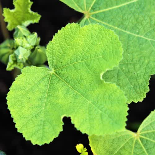 "ลักษณะใบฮอลลี่ฮ็อค (Alcea rosea)".