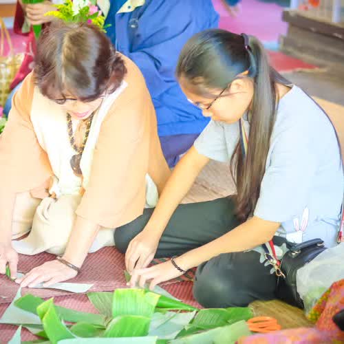 | คำอธิบาย : การสาธิตการทำสวยดอก ในงาน "กาดสืบสานครัวฮัก" และ "กาดสืบสานงานทำมือ" วันที่ 3-4 พฤศจิกายน 2561 |