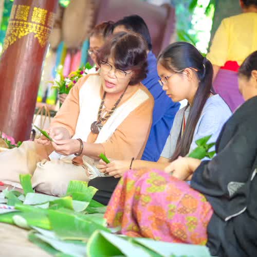 | คำอธิบาย : การสาธิตการทำสวยดอก ในงาน "กาดสืบสานครัวฮัก" และ "กาดสืบสานงานทำมือ" วันที่ 3-4 พฤศจิกายน 2561 |