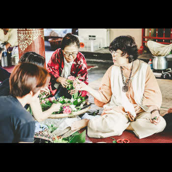 | คำอธิบาย : การสาธิตการทำสวยดอก ในงาน "กาดสืบสานครัวฮัก" และ "กาดสืบสานงานทำมือ" วันที่ 3-4 พฤศจิกายน 2561 |