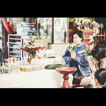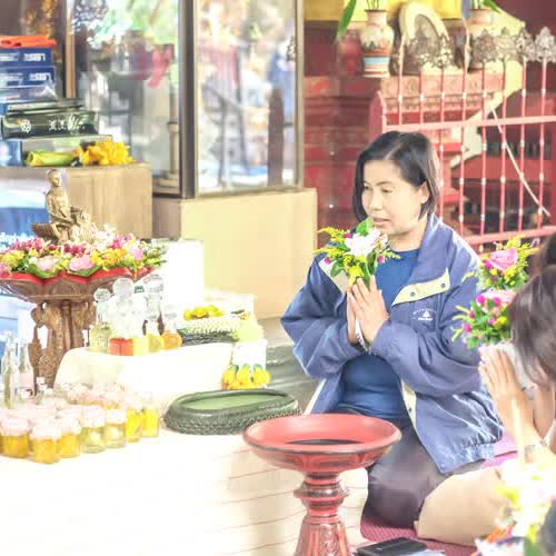 การทำความเคารพเจ้าดารารัศมี ด้วยสวยดอก ได้รับใบอนุญาตภายใต้ ให้เผยแพร่-ดัดแปลง-โดยต้องระบุที่มา 3.0 Thailand.