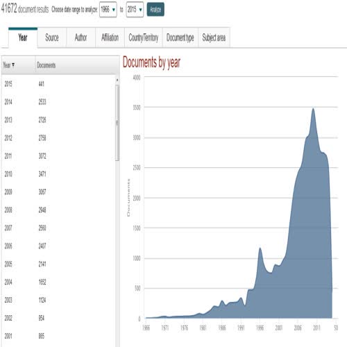 รีวิว : ตัวอย่างผลลัพธ์จากความสามารถ Analyze search results ของฐานข้อมูลออนไลน์ Scopus