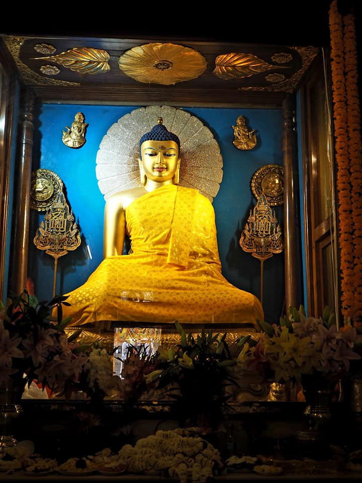 | คำอธิบาย : พระพุทธเมตตา ซึ่งเป็นพระพุทธรูปปางมารวิชัย ที่สร้างด้วยหินแกรนิตสีดำ อายุกว่า 1,400 ปี พระประธานภายในพระมหาเจดีย์พุทธคยา |