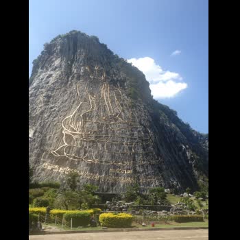 | คำอธิบาย : เขาชีจรรย์ สถานที่ท่องเที่ยวที่มีชื่อเสียงอีกแห่งหนึ่งของจังหวัดชลบุรี หน้าผาเขาชีจรรย์เป็นปูชนียสถานสำคัญทางพระพุทธศาสนา เป็นพระพุทธรูปประทับ นั่งปางมารวิชัยเลียนแบบ พระพุทธนวราชบพิตรศิลปะสุโขทัยผสมล้านนา ขนาดความสูง 109 เมตรหน้าตักกว้าง 70 เมตรฐานบัวหรือบัวบัลลังค์ สูง 21 เมตรรวมความสูงขององค์พระและบัลลังค์ทั้งสิ้น 130 เมตร |