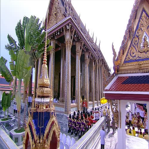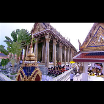 | คำอธิบาย : ภาพพระราชทาน วันศุกร์ที่ 3 พฤษภาคม 2562 เชิญพระสุพรรณบัฏ ดวงพระบรมราชสมภพ และพระราชลัญจกรไปยังพระที่นั่งไพศาลทักษิณ เสด็จพระราชดำเนินไปทรงนมัสการพระพุทธมหามณีรัตนปฏิมากร พระรัตนตรัย และถวายบังคมพระบรมอัฐิและพระอัฐิ จุดเทียนชัย พระสงฆ์ทรงสมาณศักดิ์ประกาศการพระราชพิธีบรมราชาภิเษก His Majesty the King proceeds to pay homage to the Emerald Buddha and the ashes of royal ancestors. Then His Majesty lights the ceremonial candles and a senior monk announces the coronation ceremony. |