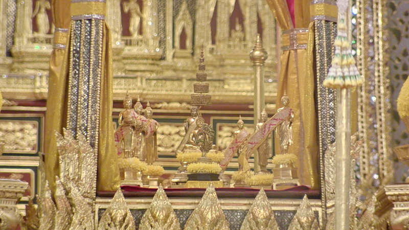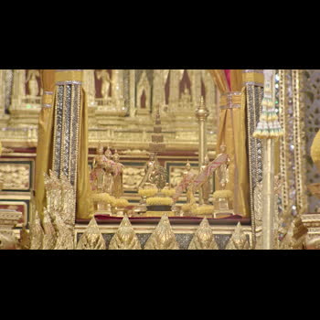 | คำอธิบาย : ภาพพระราชทาน วันศุกร์ที่ 3 พฤษภาคม 2562 เชิญพระสุพรรณบัฏ ดวงพระบรมราชสมภพ และพระราชลัญจกรไปยังพระที่นั่งไพศาลทักษิณ เสด็จพระราชดำเนินไปทรงนมัสการพระพุทธมหามณีรัตนปฏิมากร พระรัตนตรัย และถวายบังคมพระบรมอัฐิและพระอัฐิ จุดเทียนชัย พระสงฆ์ทรงสมาณศักดิ์ประกาศการพระราชพิธีบรมราชาภิเษก His Majesty the King proceeds to pay homage to the Emerald Buddha and the ashes of royal ancestors. Then His Majesty lights the ceremonial candles and a senior monk announces the coronation ceremony. |