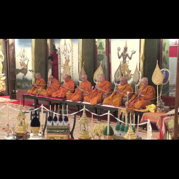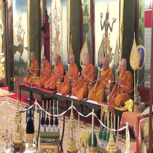 | คำอธิบาย : ภาพพระราชทาน วันศุกร์ที่ 3 พฤษภาคม 2562 เชิญพระสุพรรณบัฏ ดวงพระบรมราชสมภพ และพระราชลัญจกรไปยังพระที่นั่งไพศาลทักษิณ เสด็จพระราชดำเนินไปทรงนมัสการพระพุทธมหามณีรัตนปฏิมากร พระรัตนตรัย และถวายบังคมพระบรมอัฐิและพระอัฐิ จุดเทียนชัย พระสงฆ์ทรงสมาณศักดิ์ประกาศการพระราชพิธีบรมราชาภิเษก His Majesty the King proceeds to pay homage to the Emerald Buddha and the ashes of royal ancestors. Then His Majesty lights the ceremonial candles and a senior monk announces the coronation ceremony. |