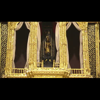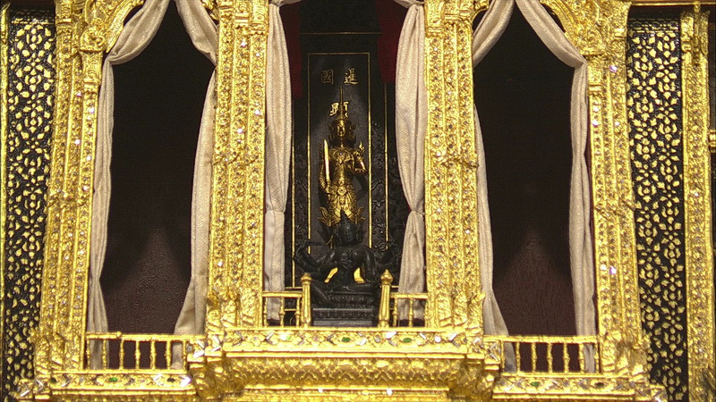 | คำอธิบาย : ภาพพระราชทาน วันศุกร์ที่ 3 พฤษภาคม 2562 เชิญพระสุพรรณบัฏ ดวงพระบรมราชสมภพ และพระราชลัญจกรไปยังพระที่นั่งไพศาลทักษิณ เสด็จพระราชดำเนินไปทรงนมัสการพระพุทธมหามณีรัตนปฏิมากร พระรัตนตรัย และถวายบังคมพระบรมอัฐิและพระอัฐิ จุดเทียนชัย พระสงฆ์ทรงสมาณศักดิ์ประกาศการพระราชพิธีบรมราชาภิเษก His Majesty the King proceeds to pay homage to the Emerald Buddha and the ashes of royal ancestors. Then His Majesty lights the ceremonial candles and a senior monk announces the coronation ceremony. |