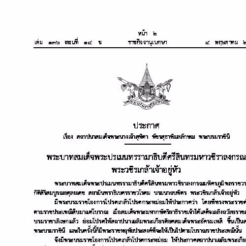 ชื่อเรื่อง : พระบรมราชโองการ ประกาศ เรื่อง สถาปนาสมเด็จพระนางเจ้าสุทิดา พัชรสุธาพิมลลักษณ พระบรมราชินี |