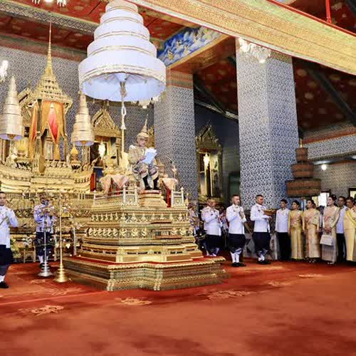 | คำอธิบาย : วันเสาร์ที่ ๔ พฤษภาคม ๒๕๖๒ พระราชพิธีบรมราชาภิเษก สรงพระมุรธาภิเษก ทรงรับน้ำอภิเษก เสด็จออกมหาสมาคมรับถวายพระพรชัยมงคล ประกาศพระองค์เป็นพุทธศาสนูปถัมภก ถวายบังคมพระบรมอัฐิและพระอัฐิ สดับปกรณ์ |