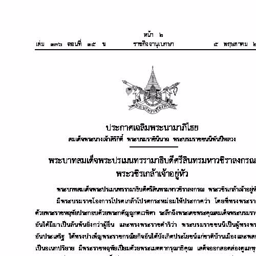 | ชื่อเรื่อง : พระบรมราชโองการ ประกาศเฉลิมพระนามาภิไธย สมเด็จพระนางเจ้าสิริกิติ์ พระบรมราชินีนาถ พระบรมราชชนนีพันปีหลวง |