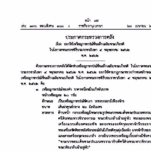 | คำสำคัญ : เหรียญกษาปณ์ที่ระลึกเฉลิมพระเกียรติ, พระราชพิธีบรมราชาภิเษก, ประกาศกระทรวงการคลัง |
