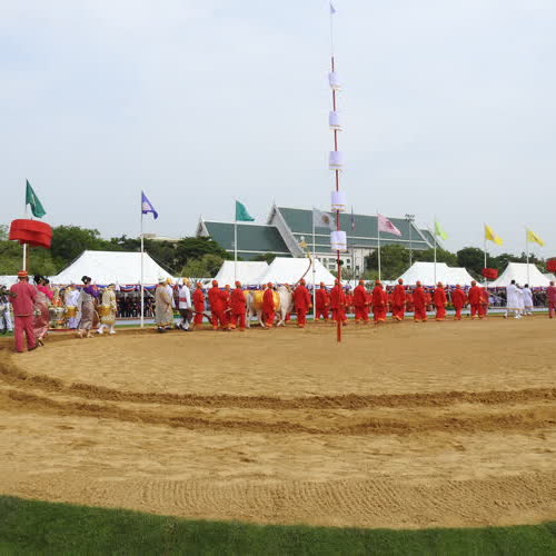 | คำอธิบาย : พระราชพิธีพืชมงคลจรดพระนังคัลแรกนาขวัญ พระราชพิธีเพื่อความเป็นสิริมงคลของเกษตรกรไทย ประกอบด้วยพระราชพิธี ๒ พิธีรวมกัน คือ พระราชพิธีพืชมงคลอันเป็นพิธีสงฆ์ ซึ่งเป็นการประกอบพระราชพิธีวันแรกที่พระอุโบสถวัดพระศรีรัตนศาสดาราม ในวันพุธที่ ๘ พฤษภาคม ๒๕๖๒ และพระราชพิธีจรดพระนังคัลแรกนาขวัญ (วันไถ่หว่าน) อันเป็นพิธีพราหมณ์ โดยประกอบพระราชพิธีในวันที่ ๙ พฤษภาคม ๒๕๖๒ ณ มลฑลพิธีท้องสนามหลวง พระยาแรกนาเจิมพระโคและคันไถ ฤกษ์พิธีไถ่หว่าน ระหว่างเวลา ๐๘.๑๙ ถึง ๐๘.๔๙ นาฬิกา โดยจะเริ่มจากการไถดะไปโดยทักษิณาวรรต ๓ รอบ ไถแปร ๓ รอบ พร้อมหว่านเมล็ดข้าว พนังงานประโคมฆ้องชัยเครื่องดุริยางค์ แล้วไถกลบอีก ๓ รอบ |