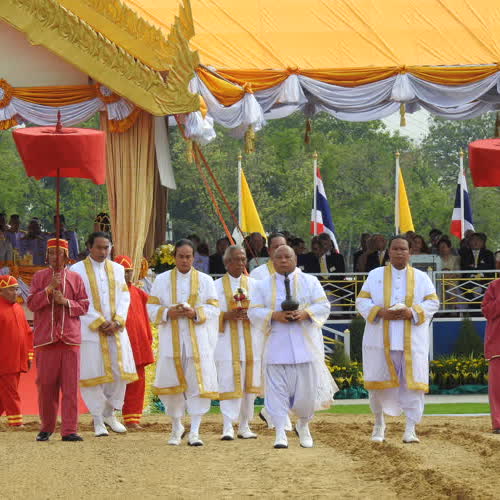 | คำอธิบาย : พระราชพิธีพืชมงคลจรดพระนังคัลแรกนาขวัญ พระราชพิธีเพื่อความเป็นสิริมงคลของเกษตรกรไทย ประกอบด้วยพระราชพิธี ๒ พิธีรวมกัน คือ พระราชพิธีพืชมงคลอันเป็นพิธีสงฆ์ ซึ่งเป็นการประกอบพระราชพิธีวันแรกที่พระอุโบสถวัดพระศรีรัตนศาสดาราม ในวันพุธที่ ๘ พฤษภาคม ๒๕๖๒ และพระราชพิธีจรดพระนังคัลแรกนาขวัญ (วันไถ่หว่าน) อันเป็นพิธีพราหมณ์ โดยประกอบพระราชพิธีในวันที่ ๙ พฤษภาคม ๒๕๖๒ ณ มลฑลพิธีท้องสนามหลวง พระยาแรกนาเจิมพระโคและคันไถ ฤกษ์พิธีไถ่หว่าน ระหว่างเวลา ๐๘.๑๙ ถึง ๐๘.๔๙ นาฬิกา โดยจะเริ่มจากการไถดะไปโดยทักษิณาวรรต ๓ รอบ ไถแปร ๓ รอบ พร้อมหว่านเมล็ดข้าว พนังงานประโคมฆ้องชัยเครื่องดุริยางค์ แล้วไถกลบอีก ๓ รอบ |