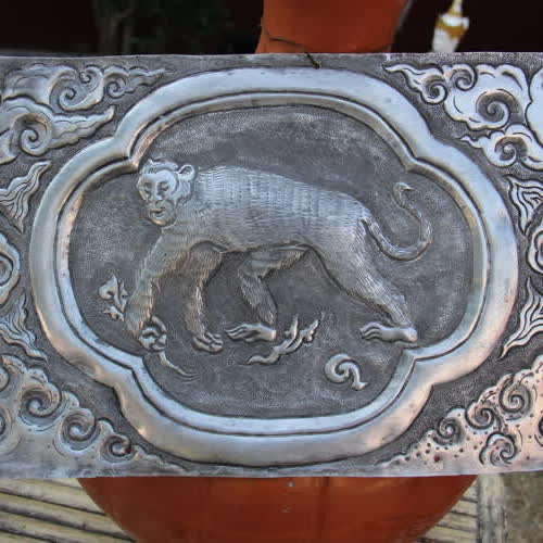 | คำอธิบาย : ภาพจากวัดศรีสุพรรณ จ.เชียงใหม่ สอนการตีเครื่องเงิน |