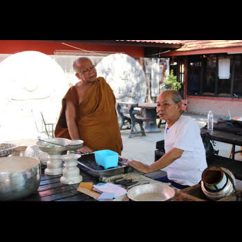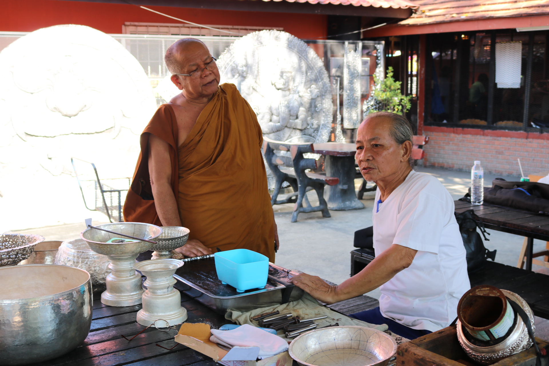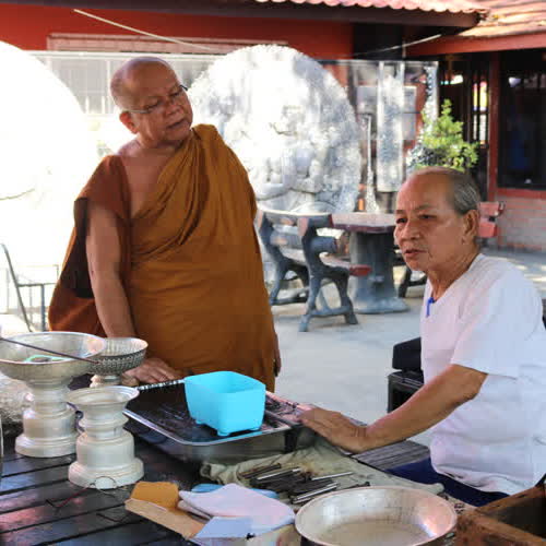 คำอธิบาย : ภาพจากวัดศรีสุพรรณ จ.เชียงใหม่ สอนการตีเครื่องเงิน |
