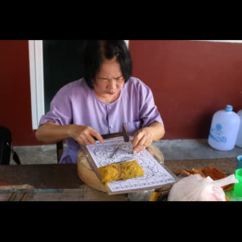 | คำอธิบาย : ภาพจากวัดศรีสุพรรณ จ.เชียงใหม่ สอนการตีเครื่องเงิน |