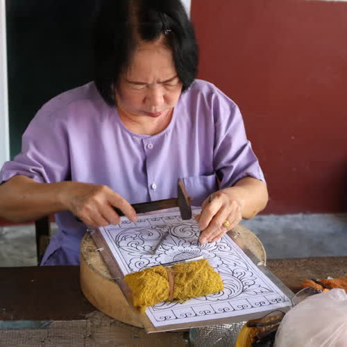 "วัดศรีสุพรรณ พระอุโบสถเงิน จ.เชียงใหม่ การตีเครื่องเงิน".