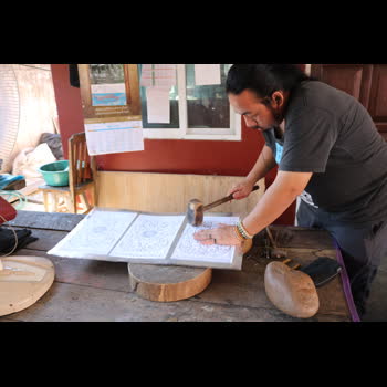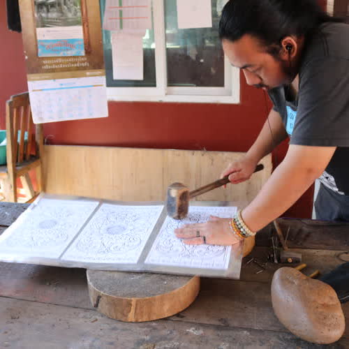 | คำอธิบาย : ภาพจากวัดศรีสุพรรณ จ.เชียงใหม่ สอนการตีเครื่องเงิน |