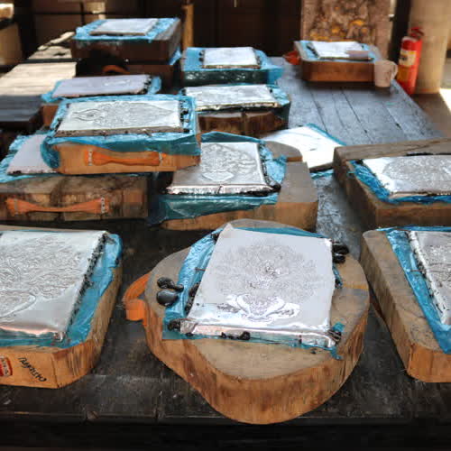 | คำอธิบาย : ภาพจากวัดศรีสุพรรณ จ.เชียงใหม่ สอนการตีเครื่องเงิน |