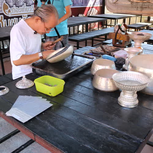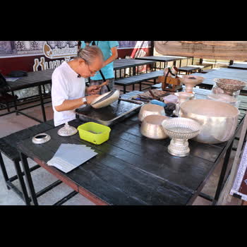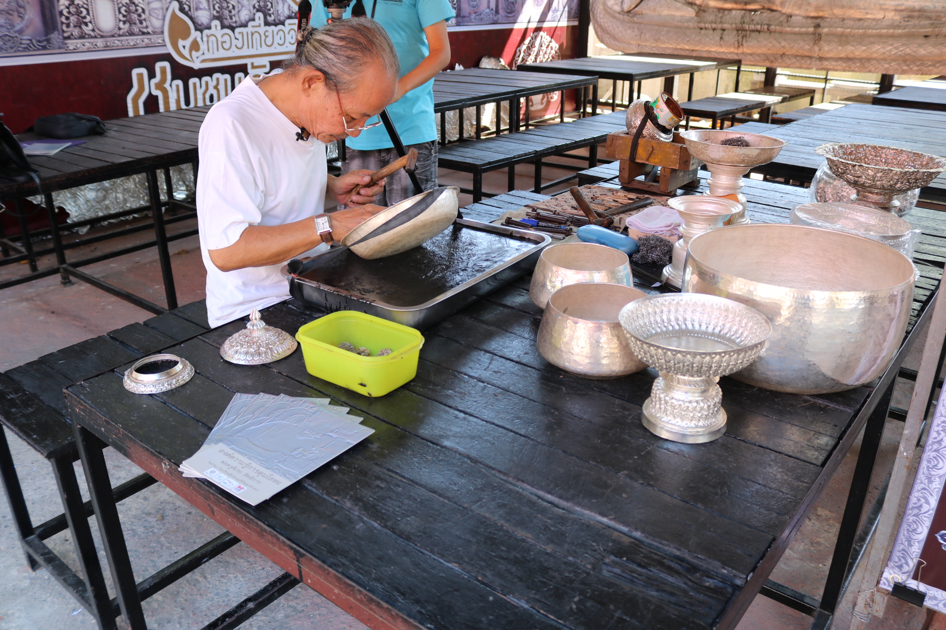 คำอธิบาย : ภาพจากวัดศรีสุพรรณ จ.เชียงใหม่ สอนการตีเครื่องเงิน |