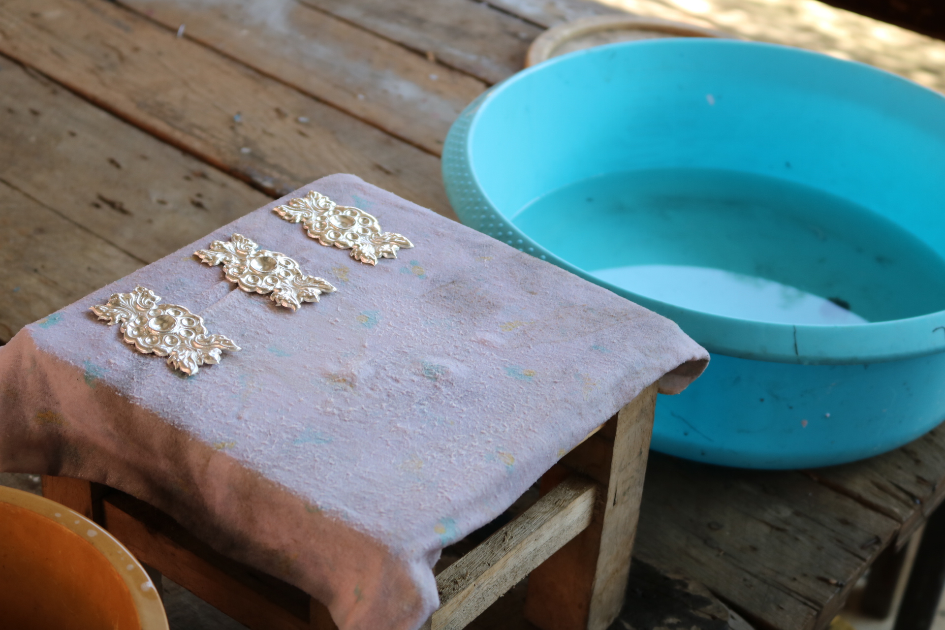 | คำอธิบาย : ภาพจากวัดศรีสุพรรณ จ.เชียงใหม่ สอนการตีเครื่องเงิน |