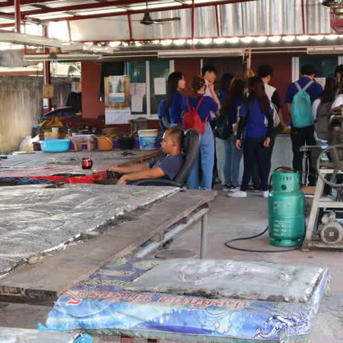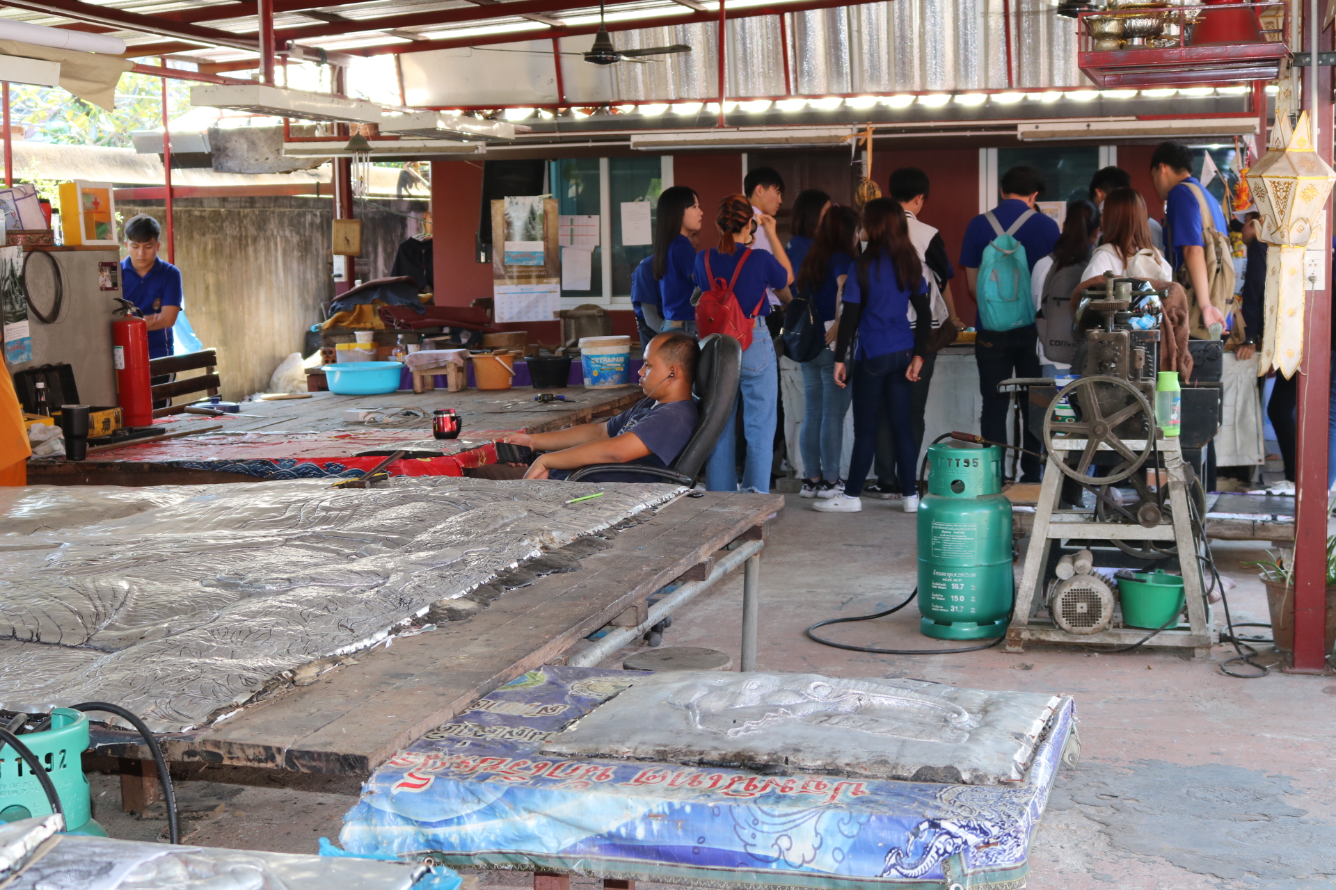 | คำอธิบาย : ภาพจากวัดศรีสุพรรณ จ.เชียงใหม่ สอนการตีเครื่องเงิน |